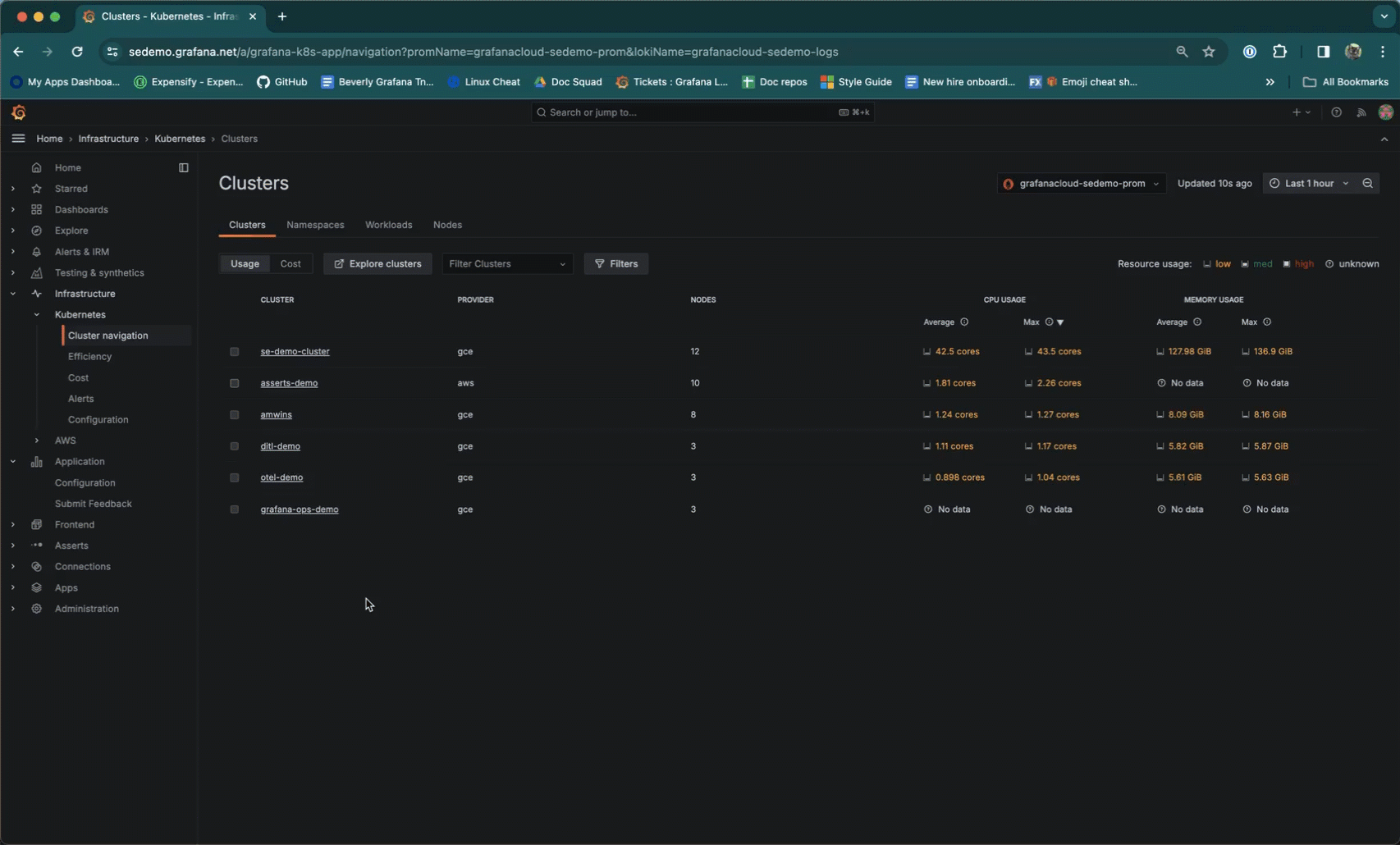 A list of Clusters