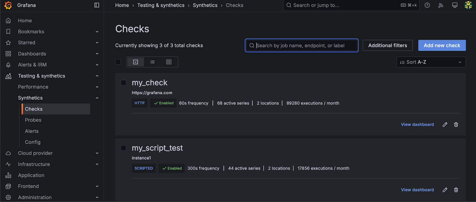 Once the role is assigned, the user will now have access to the Add New Check feature in the Synthetic Monitoring plugin.