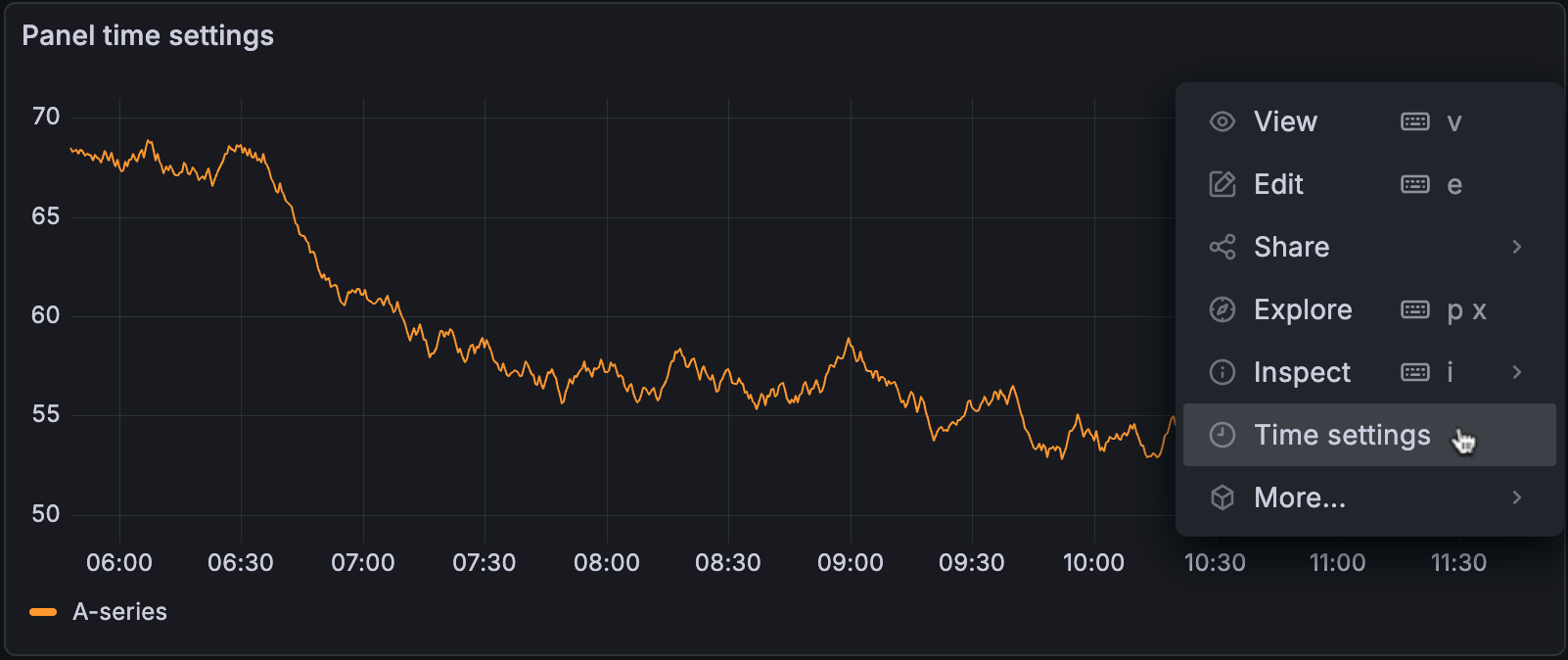 To access the Panel time settings drawer, click the panel menu and select the Time settings option: