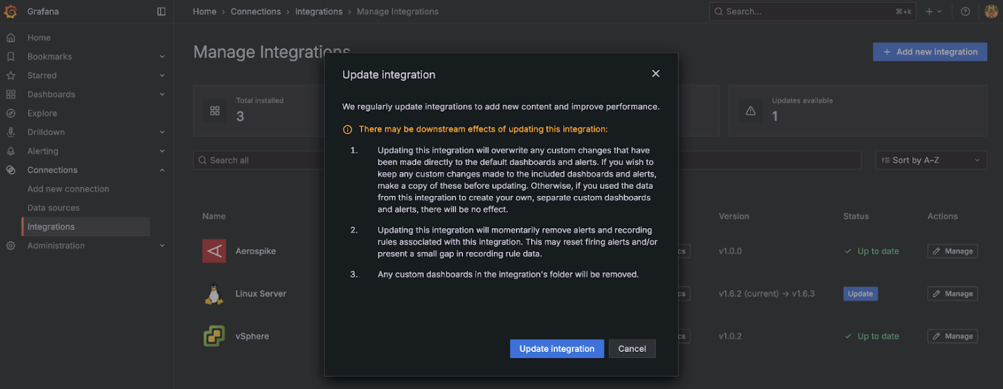 If you are using more than one integration in you observability fleet this new functionality will help you understand and manage their state.