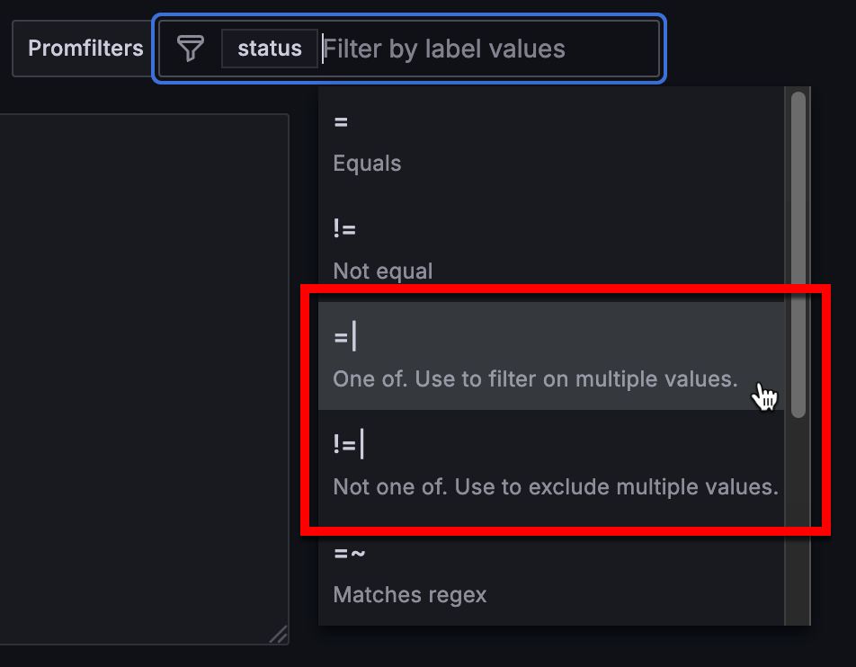 The redesigned filters are more prominent in the dashboard and filters based on the same ad hoc filter variable are more clearly related. In the new design, you can click anywhere in the filter field to begin creating a one and Grafana automatically detects which part of the filter you’re setting up. It takes fewer clicks to create a filter and the creation process using keyboard strokes is smoother than previously.