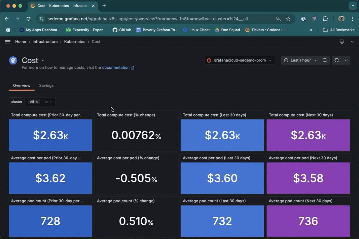 Jumpstart your alert creation and customization. Throughout Kubernetes Monitoring, panels from CPU usage to cost are ready for you to create and customize an alert.