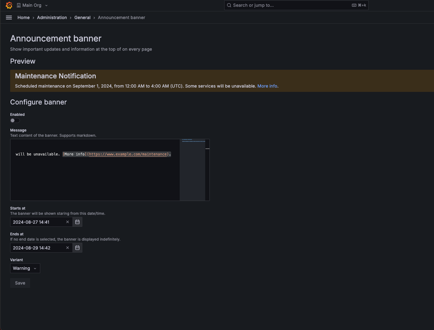 Grafana admins struggle to effectively communicate important updates and maintenance information to their users through traditional channels like email and Slack. Customers have requested a feature to display customizable banners within the Grafana interface to ensure critical information is visible and timely.