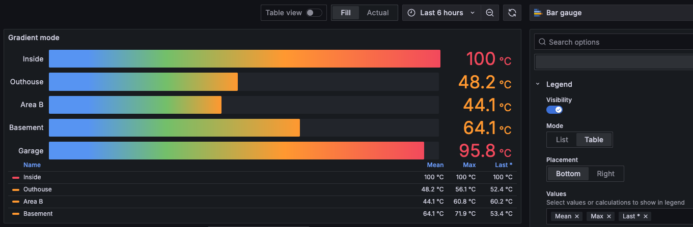 We’ve added legend support to bar gauge visualizations. You can customize legends by navigating to the Legend section in panel options. By default, the legend is disabled.