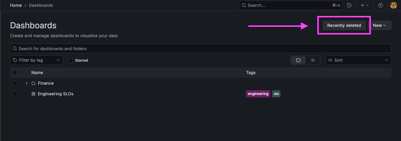 You can restore dashboards you’ve deleted, no support ticket needed. With the new Recently deleted view, accidentally removing a dashboard no longer means lost work or rebuilding panels from scratch.