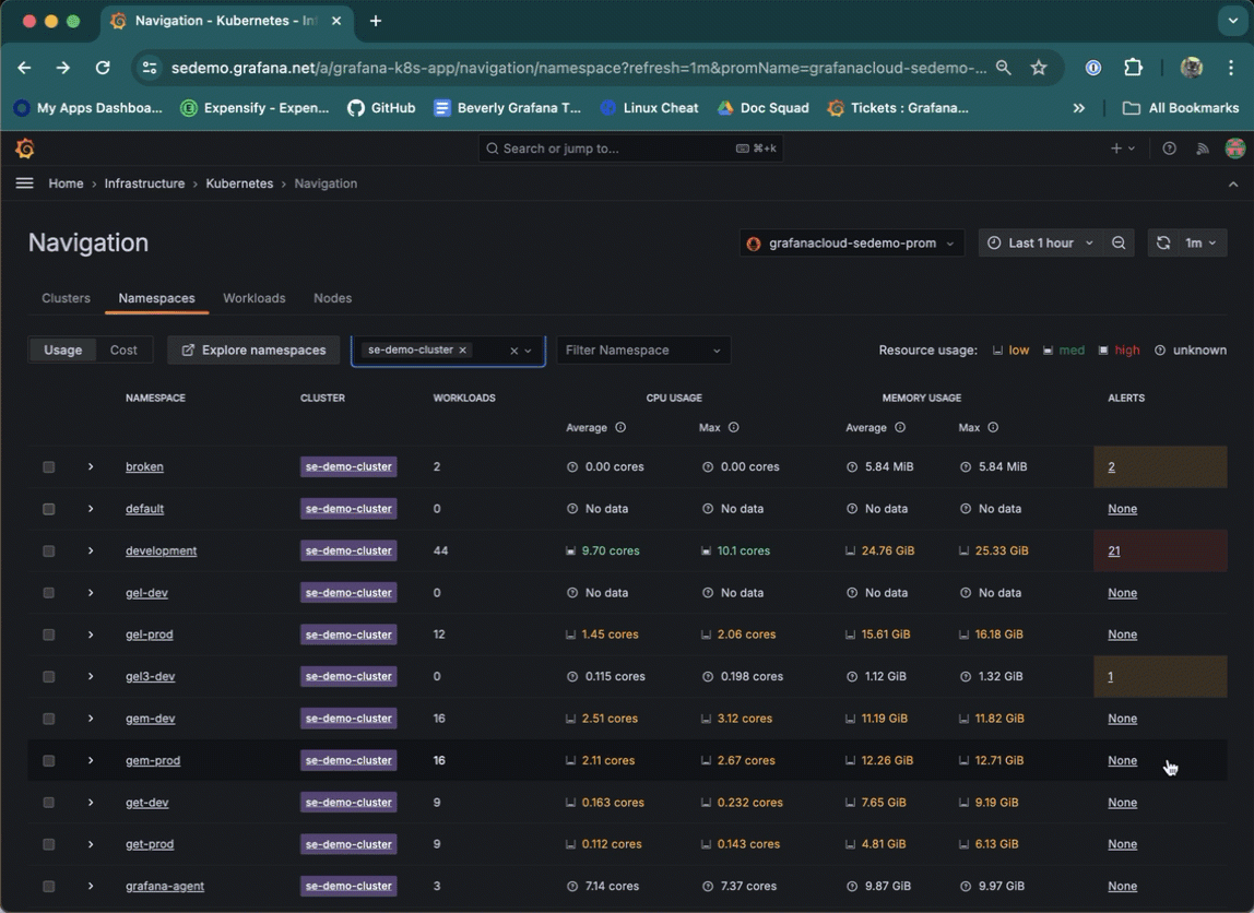 Use the in-app Cardinality page to discover on a Cluster-by-Cluster basis where all your active series are coming from for: