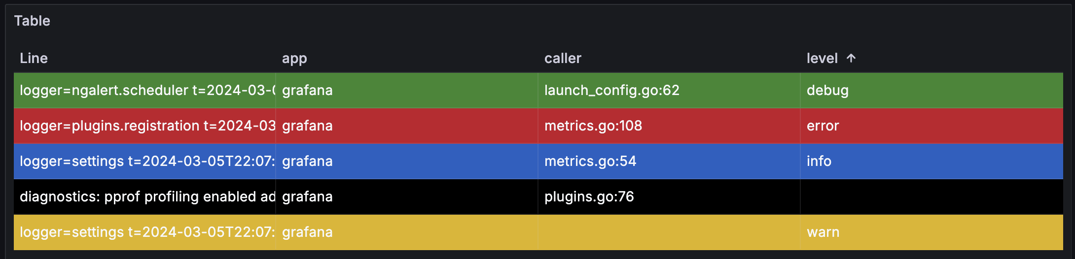 Grafana 11 adds the ability to color full table rows using the Colored background cell type of the table visualization. When you configure fields in a table to use this cell type, an option to apply the color of the cell to the entire row becomes available.
