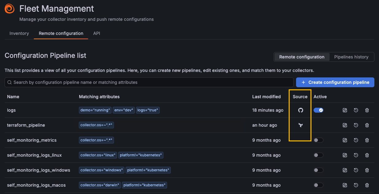 We’ve just made managing your configuration pipelines a whole lot easier! Our brand-new purpose-built GitHub Action lets you automatically sync all of your configuration pipelines across every repository—seamlessly. Once triggered, the Action recursively searches your repos for pipeline definitions and uploads them straight to Grafana Fleet Management using the new SyncPipelines endpoint of the Pipeline API.
