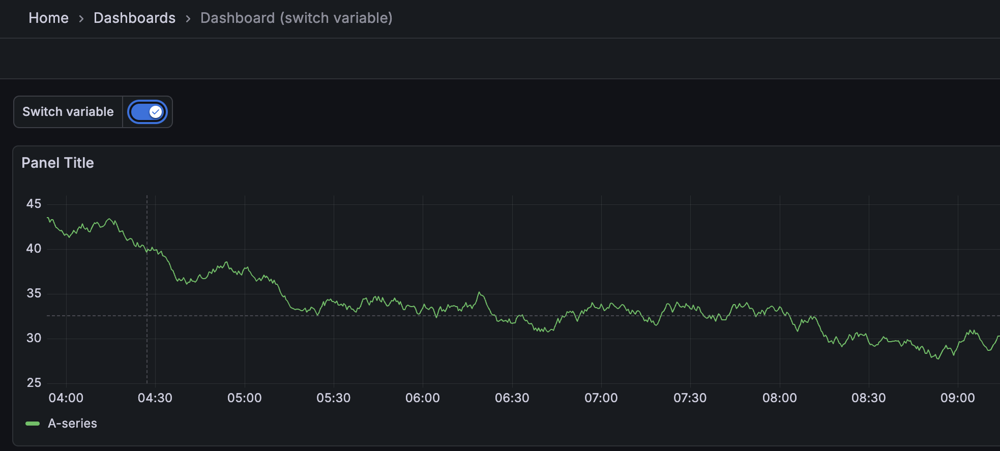 The new Switch template variable type replaces cumbersome drop-down menus with an intuitive toggle interface. Configure any two values—true/false, 1/0, yes/no, or custom pairs—and control boolean states across your dashboard with a single click. Perfect for toggling debug modes, filters, or any conditional logic.